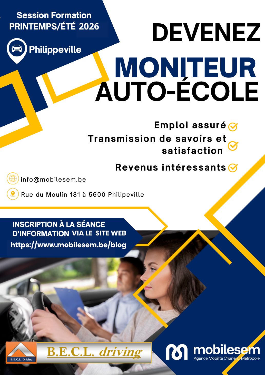 Mobilesem organise une formation moniteur auto. Inscription via notre page contact : https://www.mobilesem.be/contact